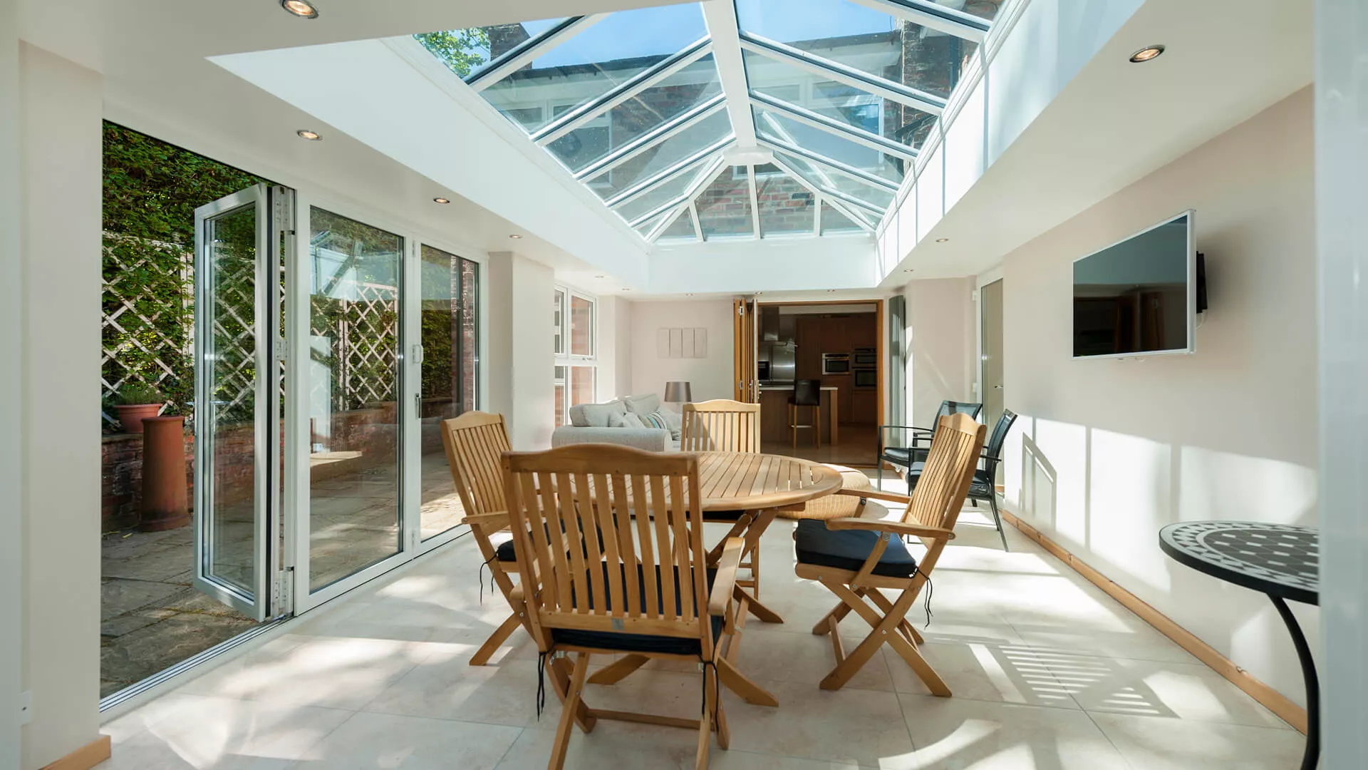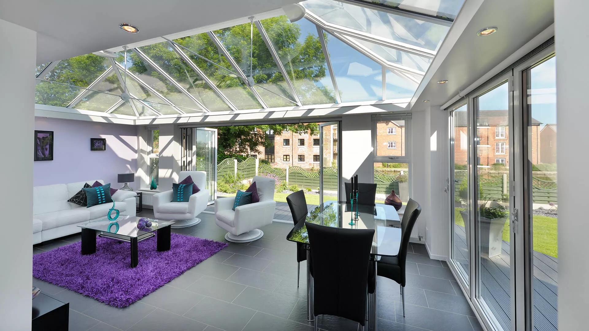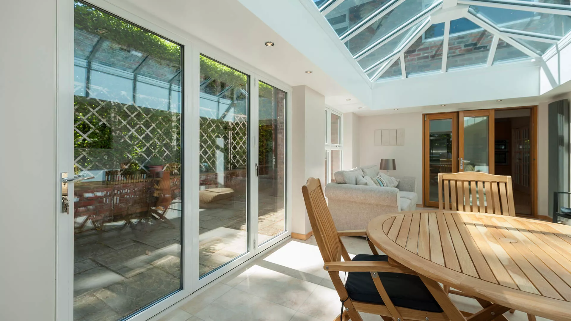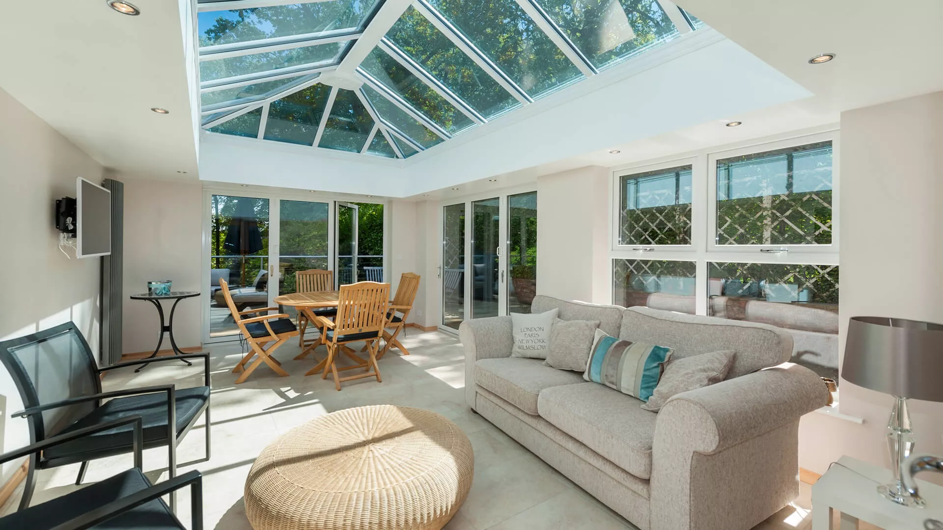 Our ‘Intelligent’ glazing creates a room for all seasons; this high performance glass reflects unwanted heat back out in the summer and welcomes warmth back in during the winter.