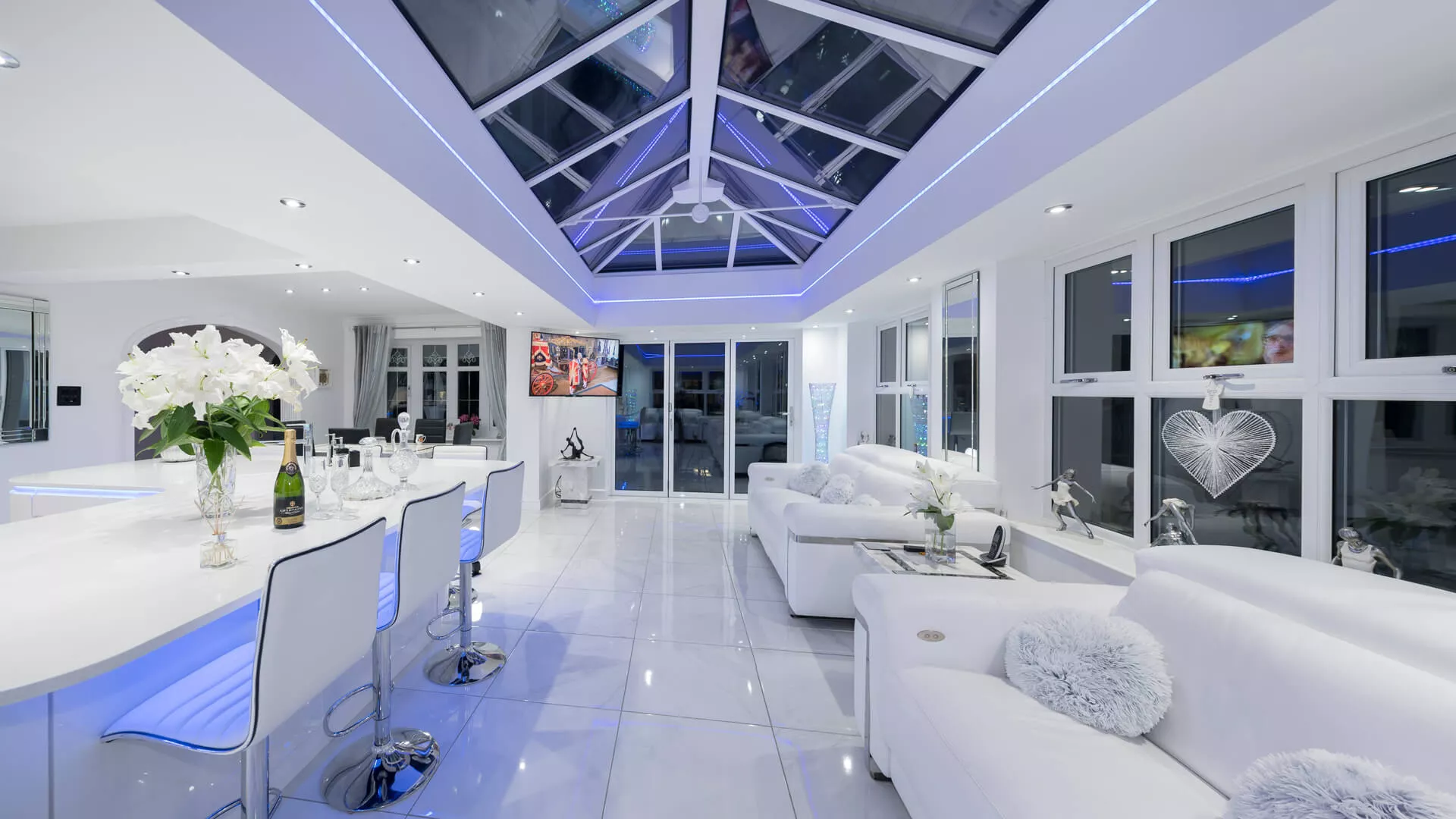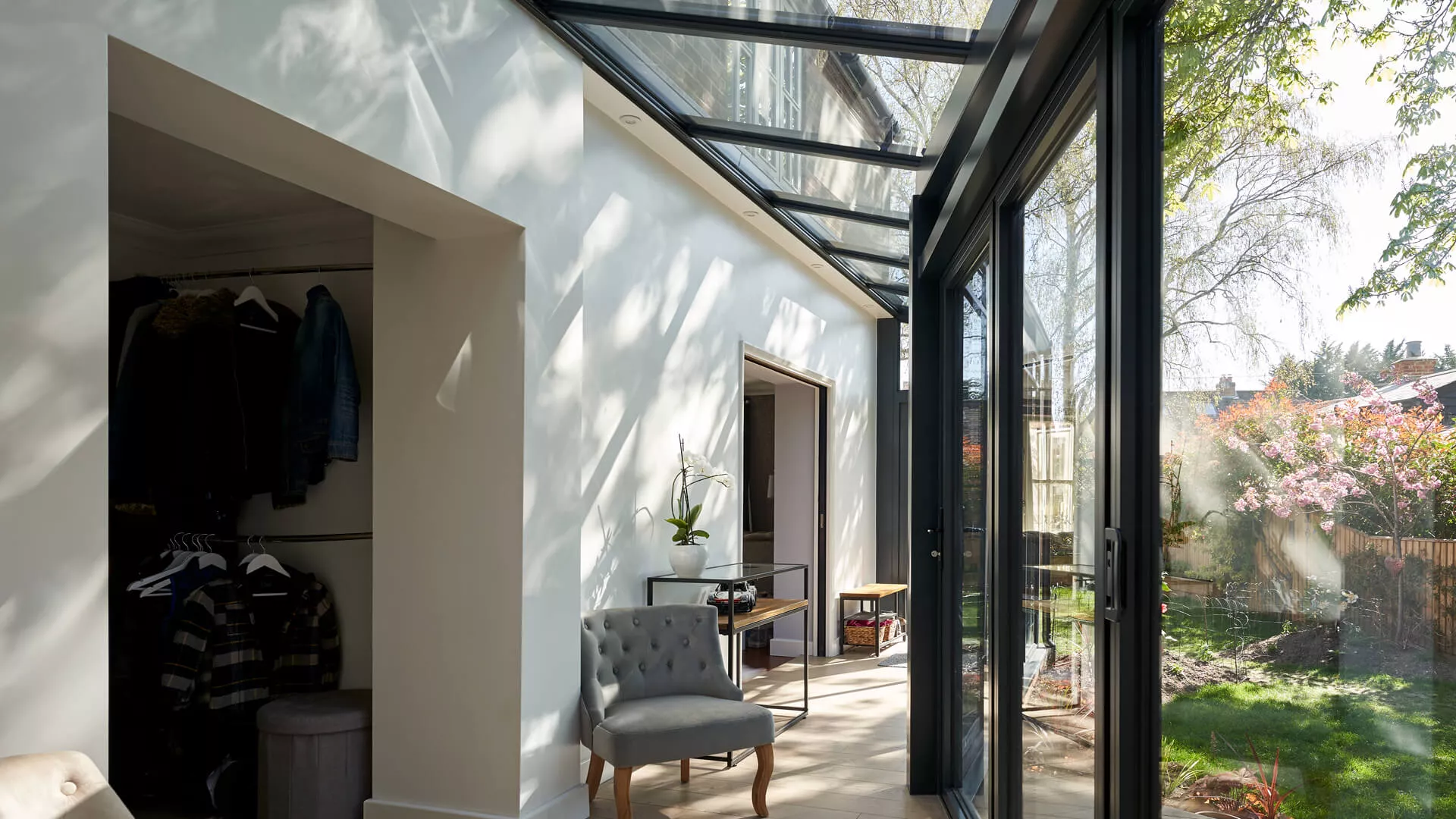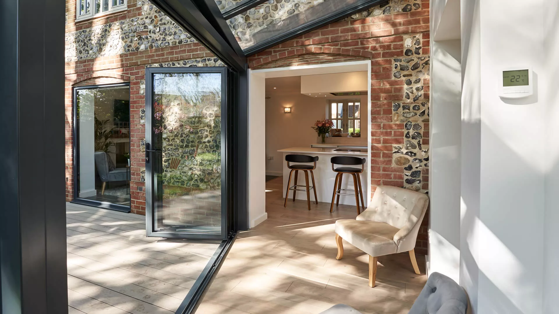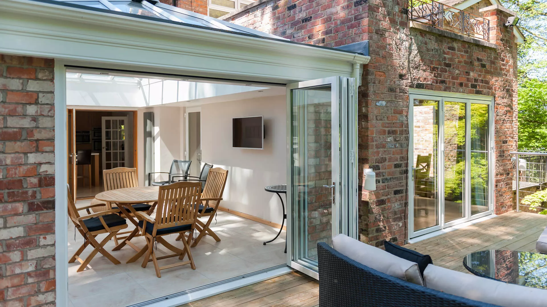 Our ‘Intelligent’ glazing creates a room for all seasons; this high performance glass reflects unwanted heat back out in the summer and welcomes warmth back in during the winter.