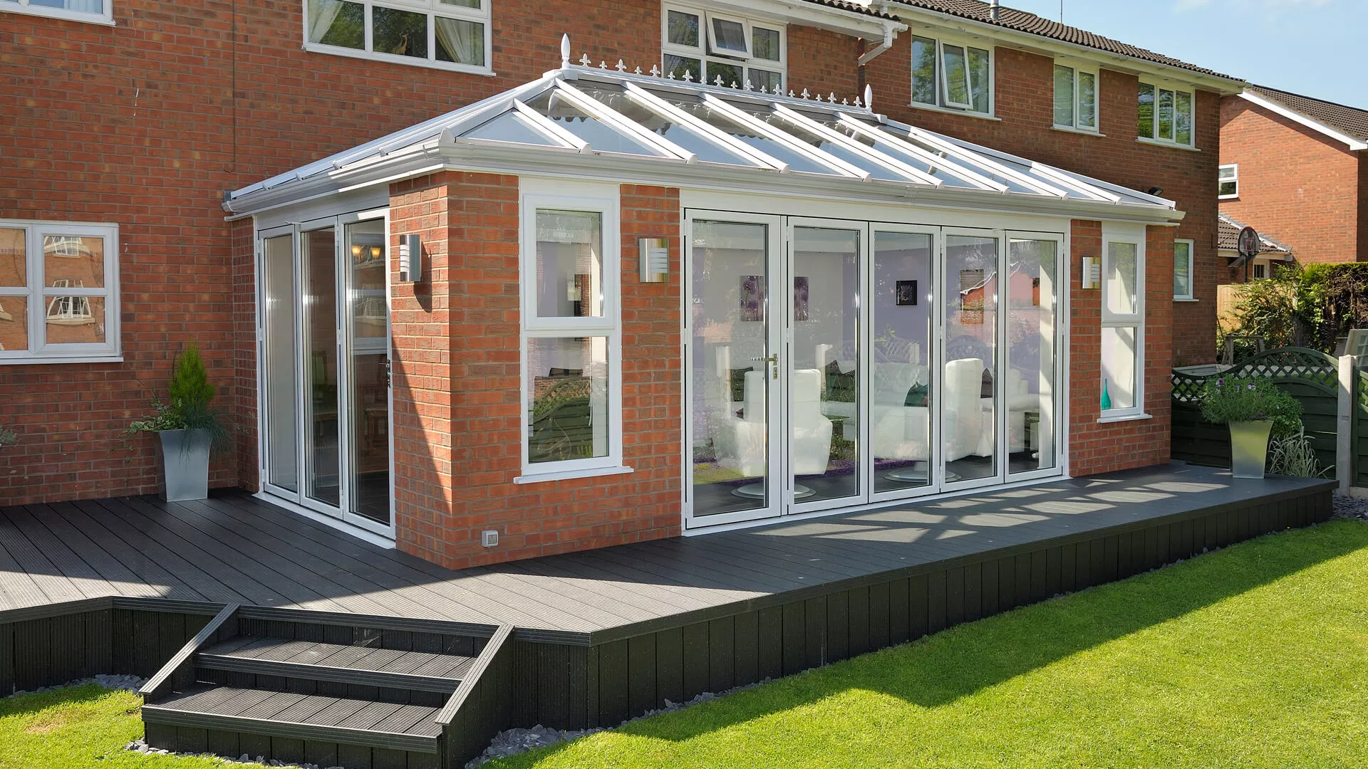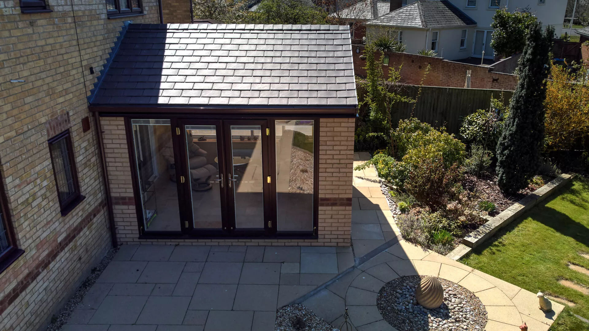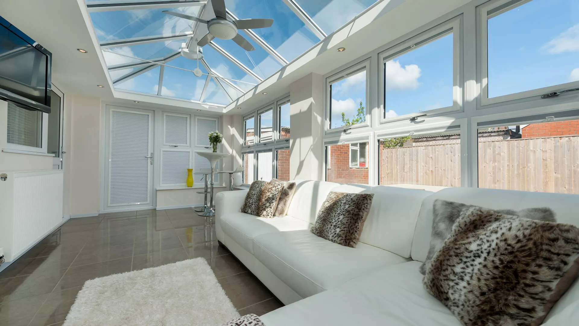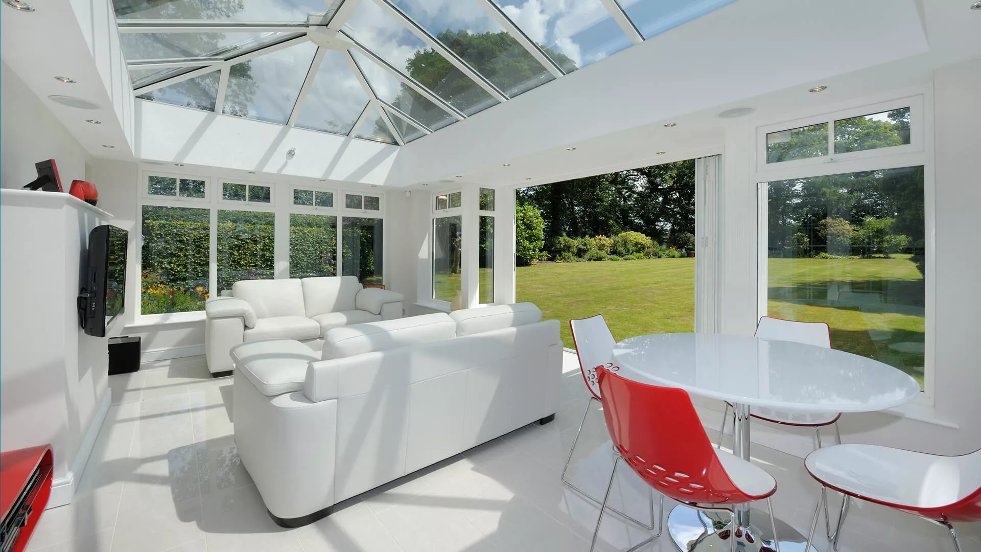 Whether it’s our lightweight solid tiled roof or our insulated glass roof both options provide far more efficient insulation and ensure that you’ll have a room that you can use comfortably all year.
