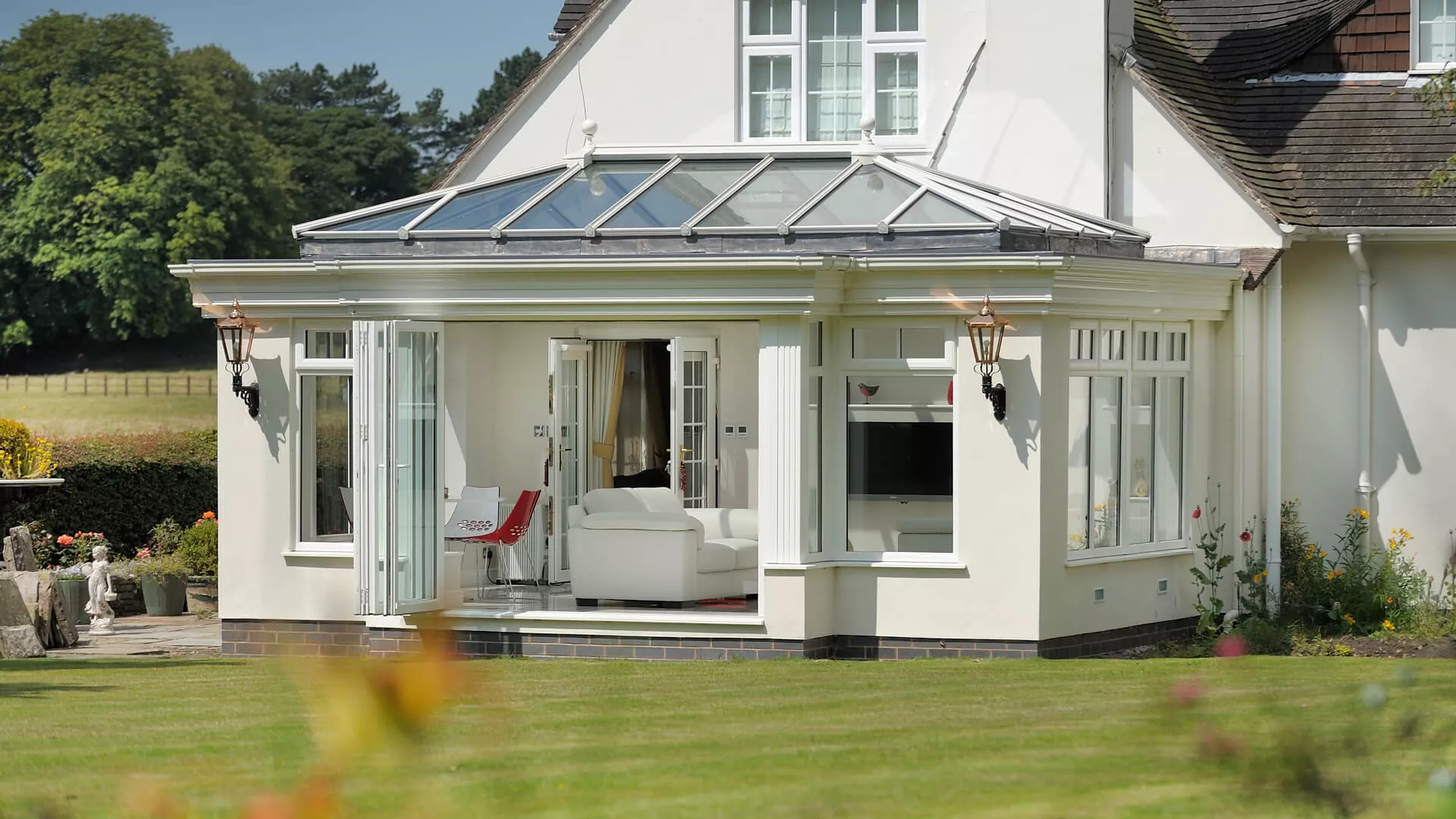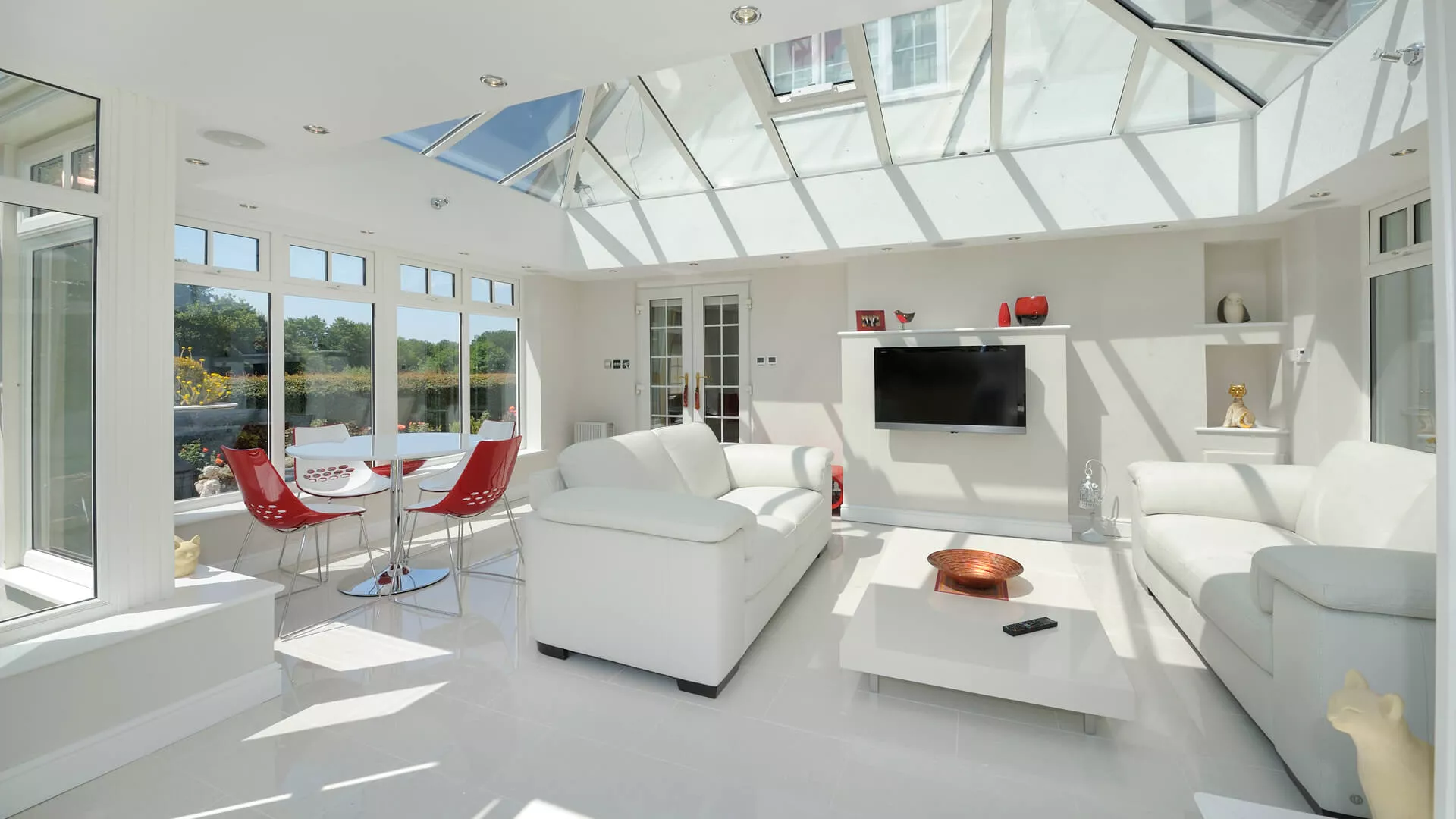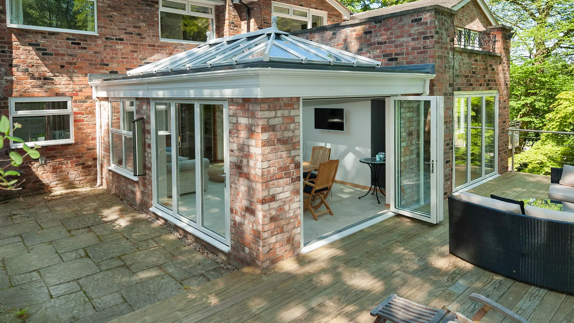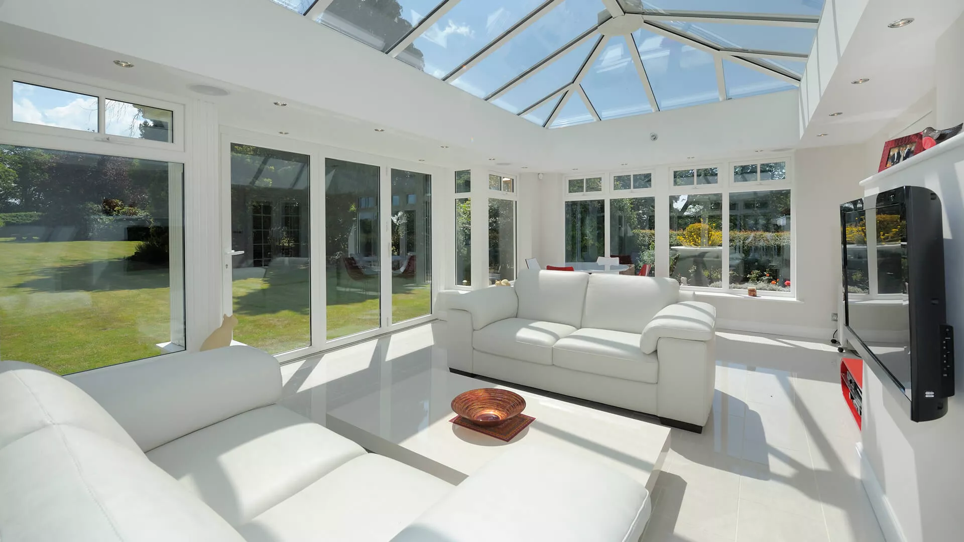 Whether it’s our lightweight solid tiled roof or our insulated glass roof both options provide far more efficient insulation and ensure that you’ll have a room that you can use comfortably all year.
