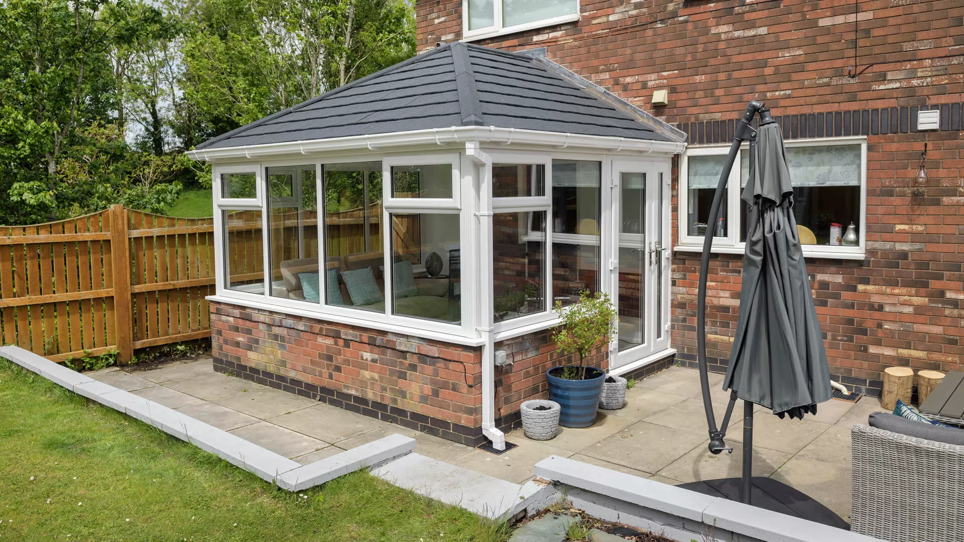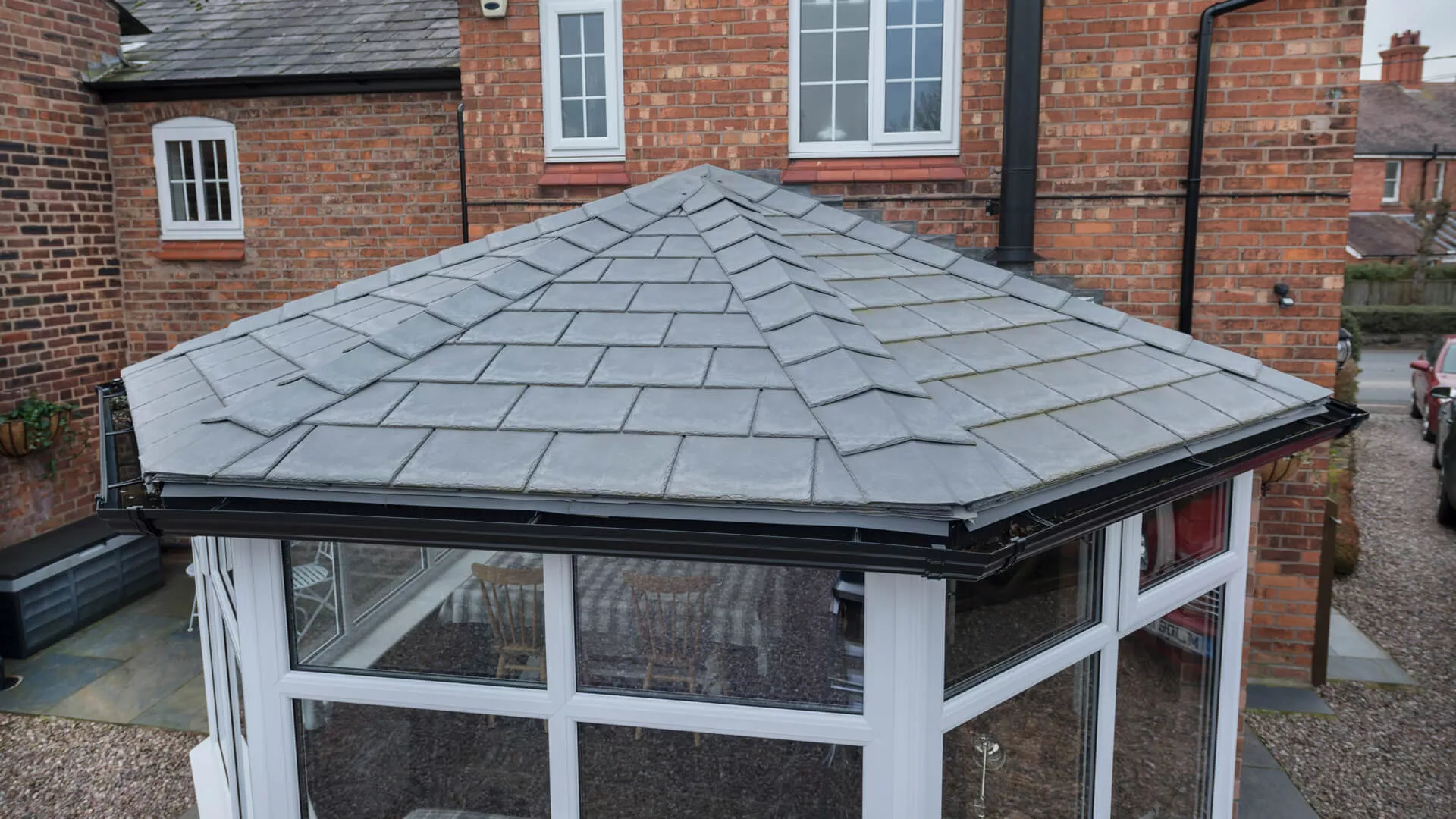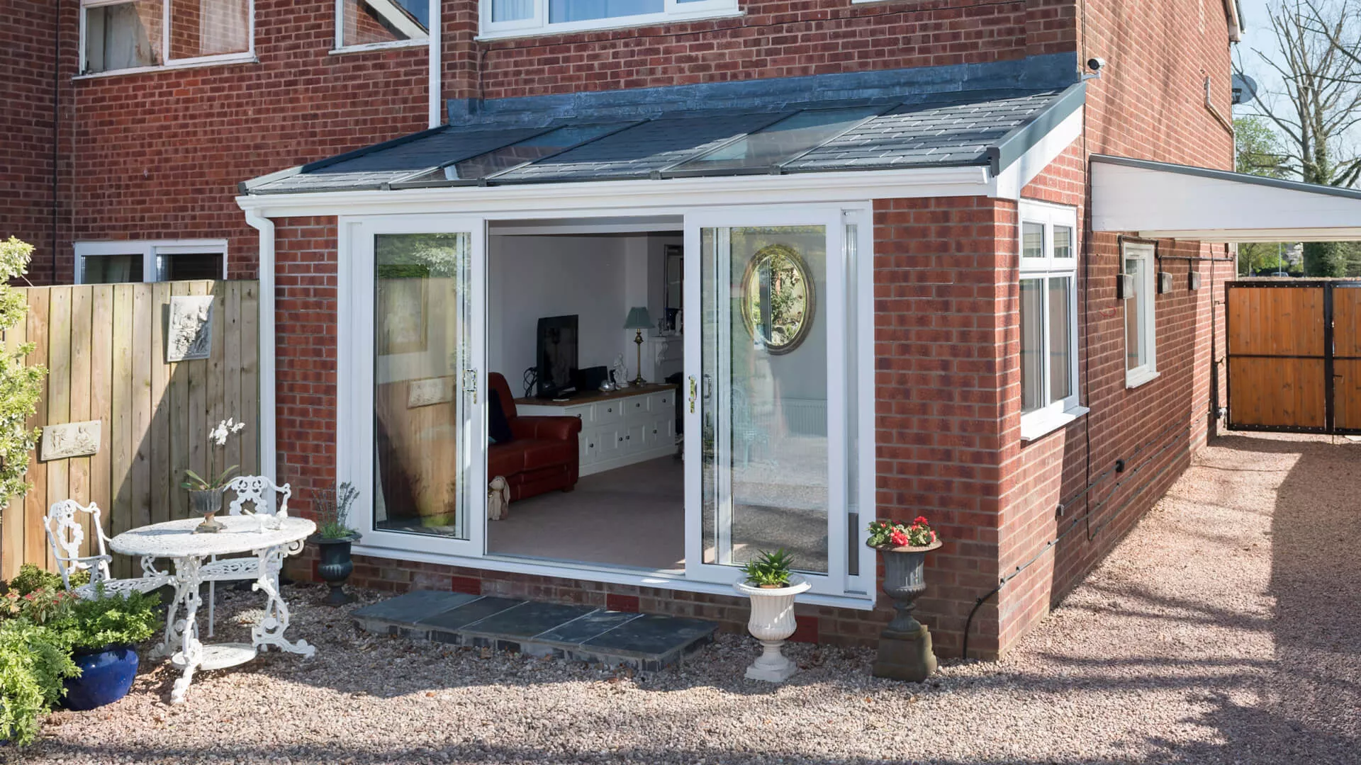 The inside of your conservatory will never have felt as luxurious as it is when you have it equipped with a solid roof, even more so than a polycarbonate or glass roof. Yes, some natural light will be lost, but natural sunlight will still force its way through the windows and doors so there’s no chance of it feeling drab and lifeless. We’ve done every possible to ensure our lightweight roof covering shares many of the aesthetic characteristics of traditional slates and tiles by using intricate detail and replicating their look.