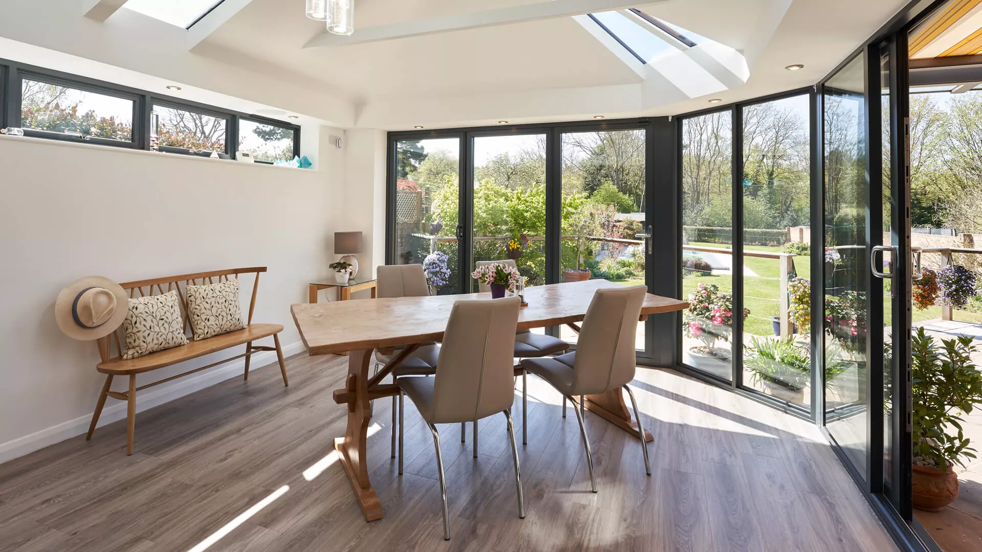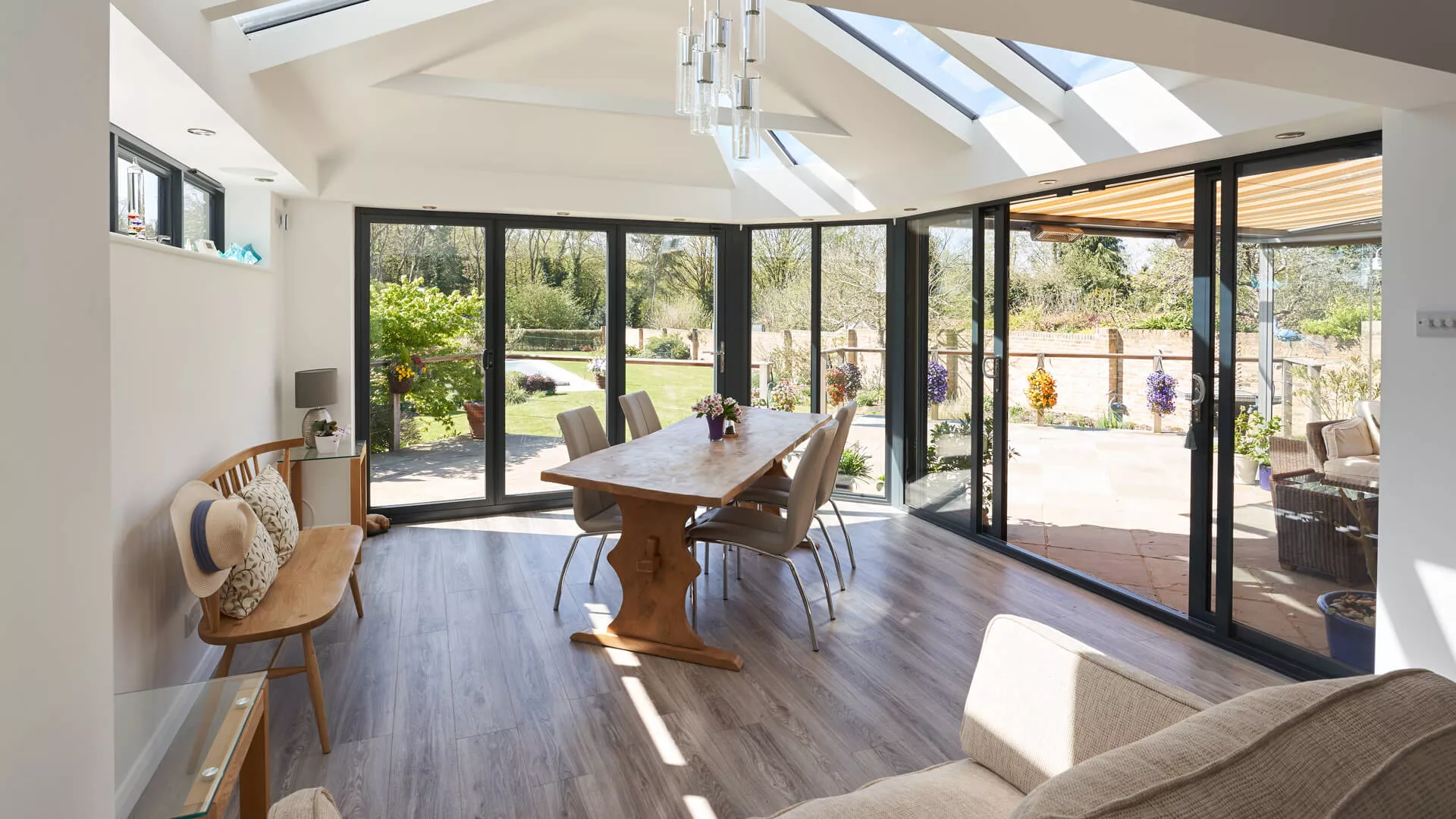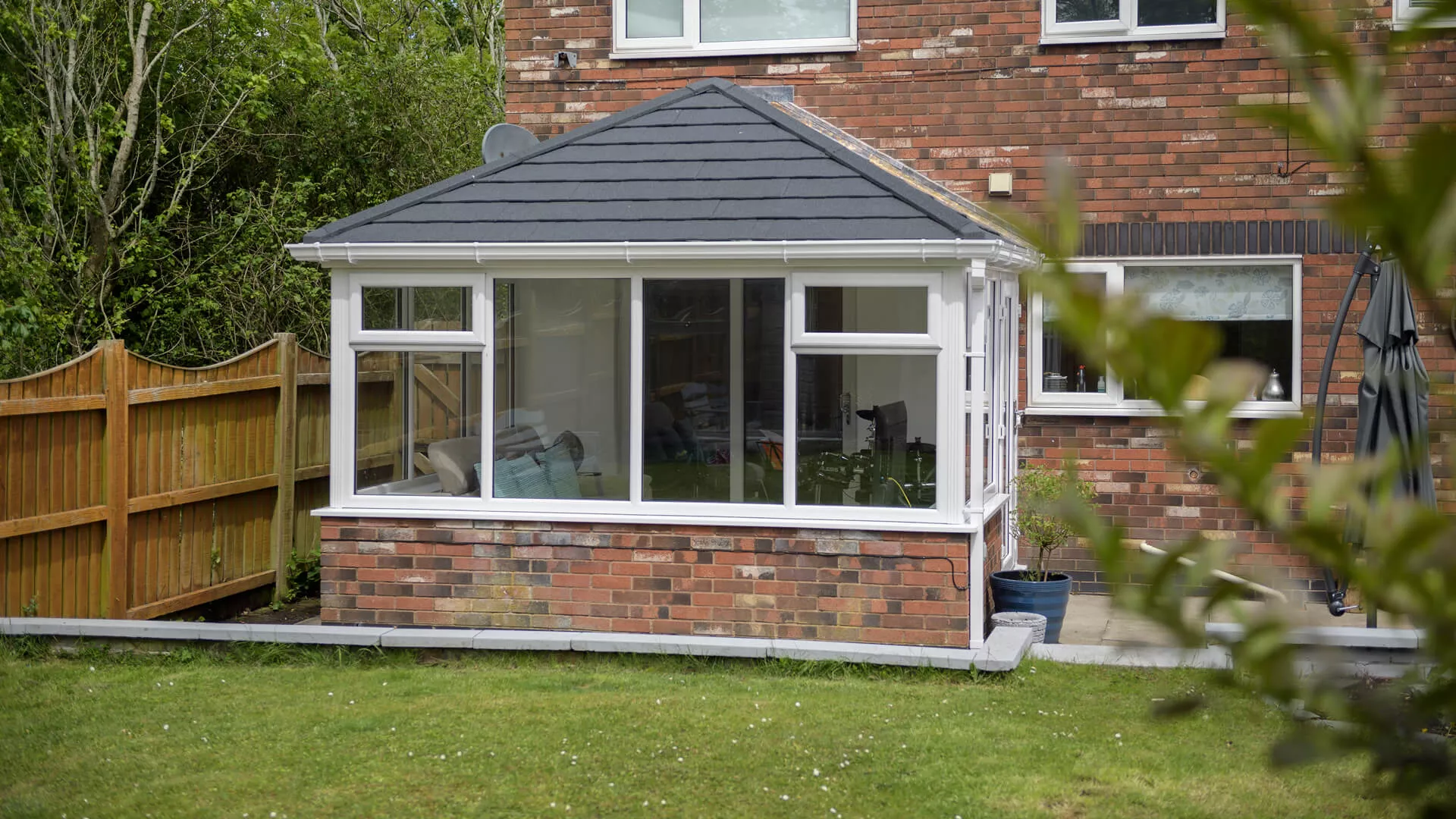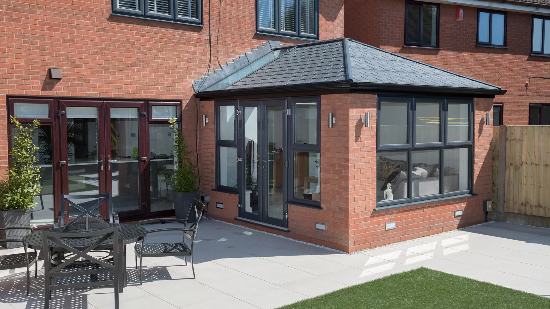 The inside of your conservatory will never have felt as luxurious as it is when you have it equipped with a solid roof, even more so than a polycarbonate or glass roof. Yes, some natural light will be lost, but natural sunlight will still force its way through the windows and doors so there’s no chance of it feeling drab and lifeless. We’ve done every possible to ensure our lightweight roof covering shares many of the aesthetic characteristics of traditional slates and tiles by using intricate detail and replicating their look.